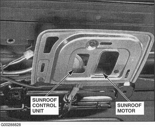 | Sunroof Control Unit | Center front of roof, behind headliner. See Figure . |