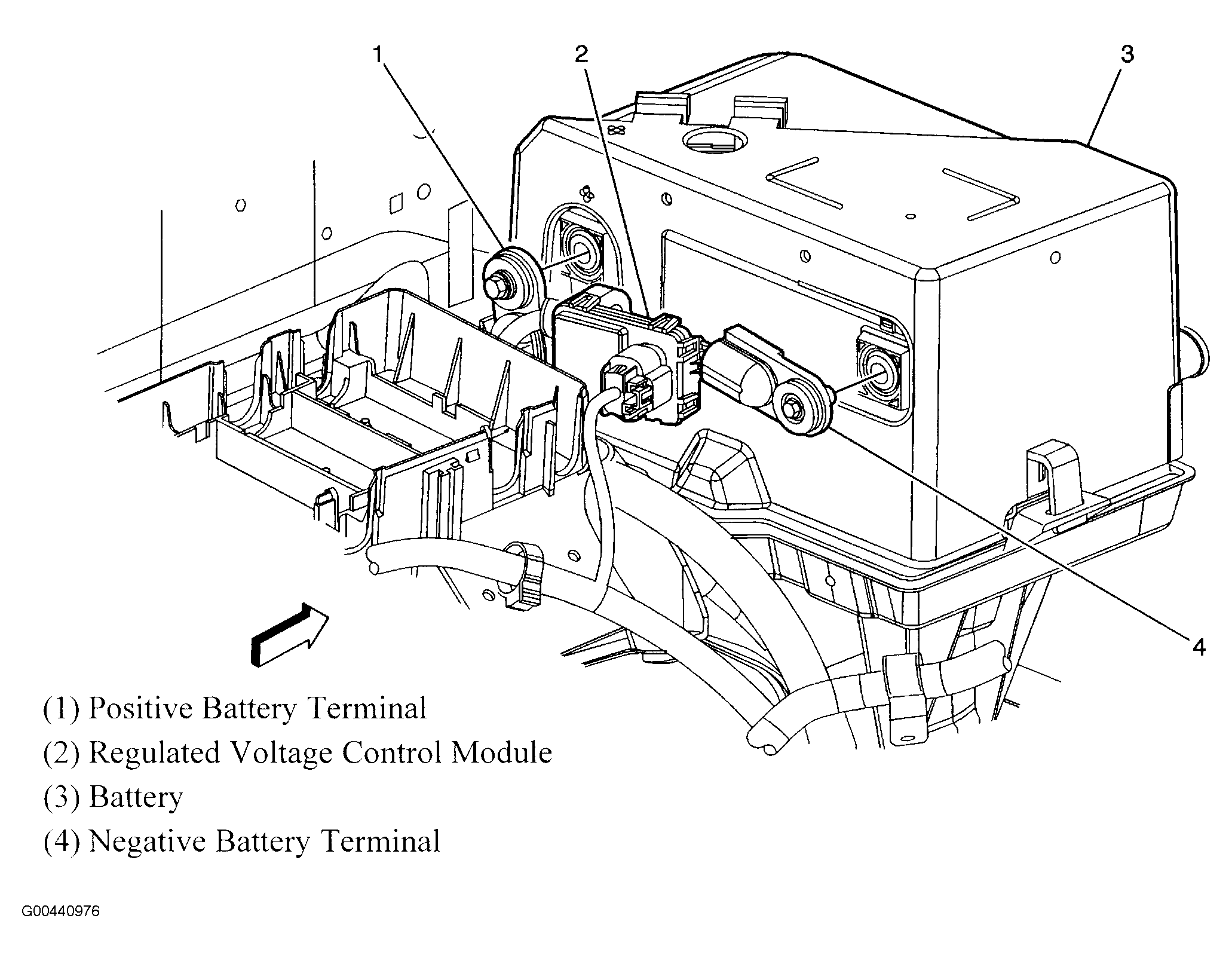 | Regulated Voltage Control Module | Behind battery. See Figure. |