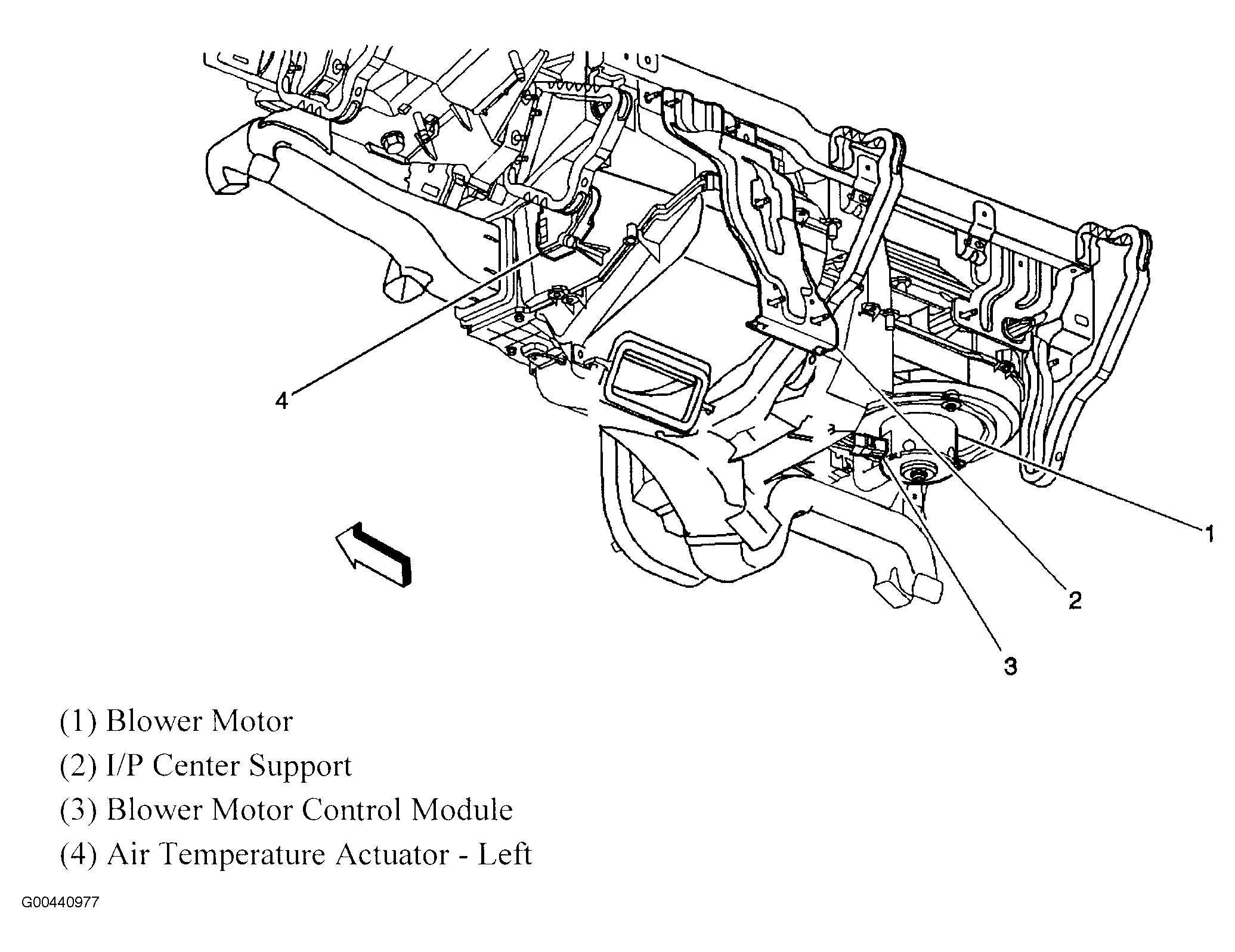| Blower Motor Control Module | Below right side of dash. See Figure. |