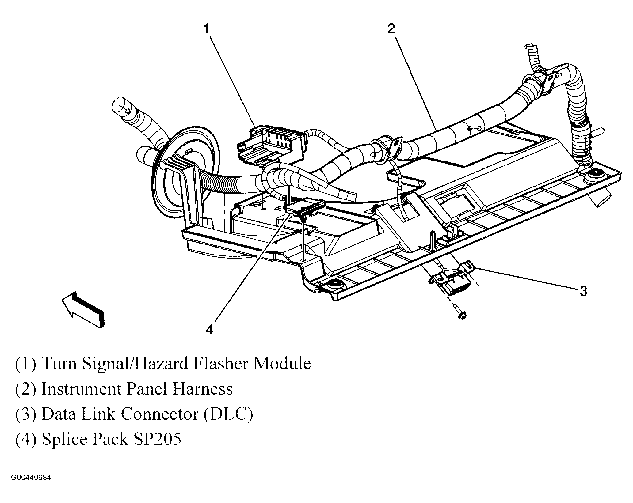 | Turn Signal/Hazard Flasher Module | Behind lower left side of dash. See Figure. |