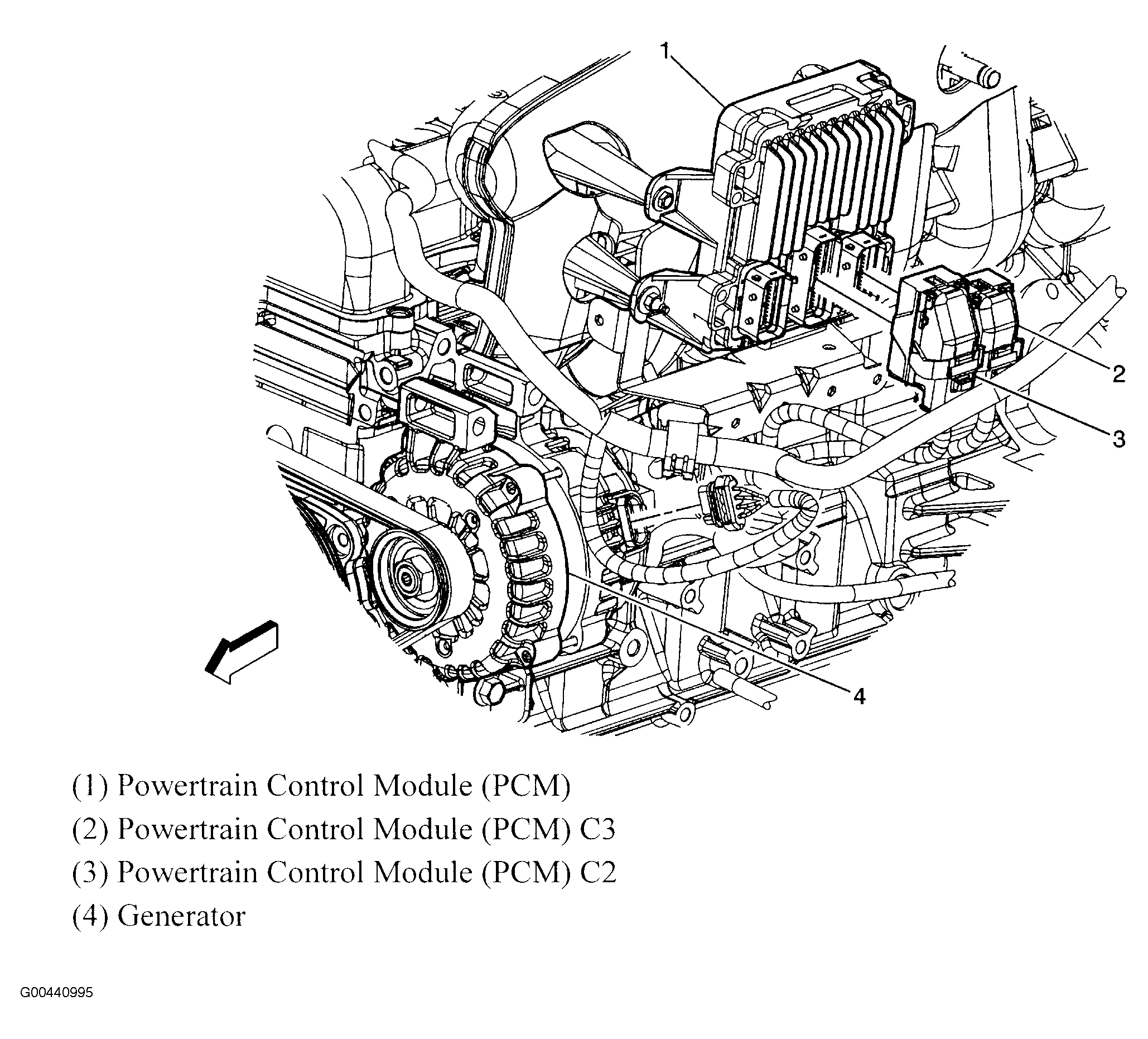 | Powertrain Control Module (PCM) | On upper left side of engine. See Figure. |