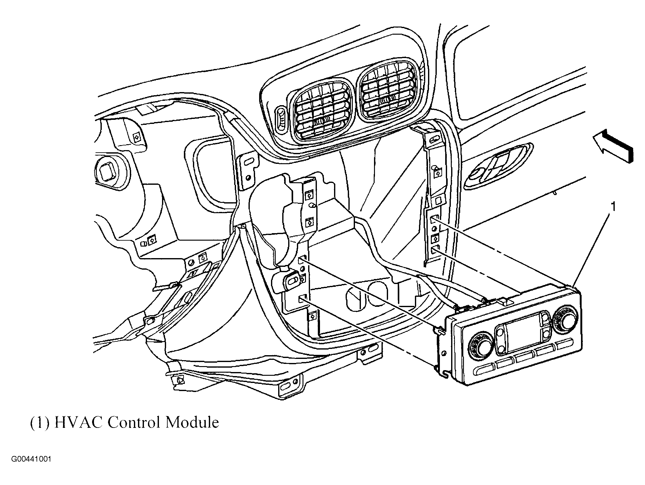 | HVAC Control Module (Manual A/C) | Center of dash. See Figure. |