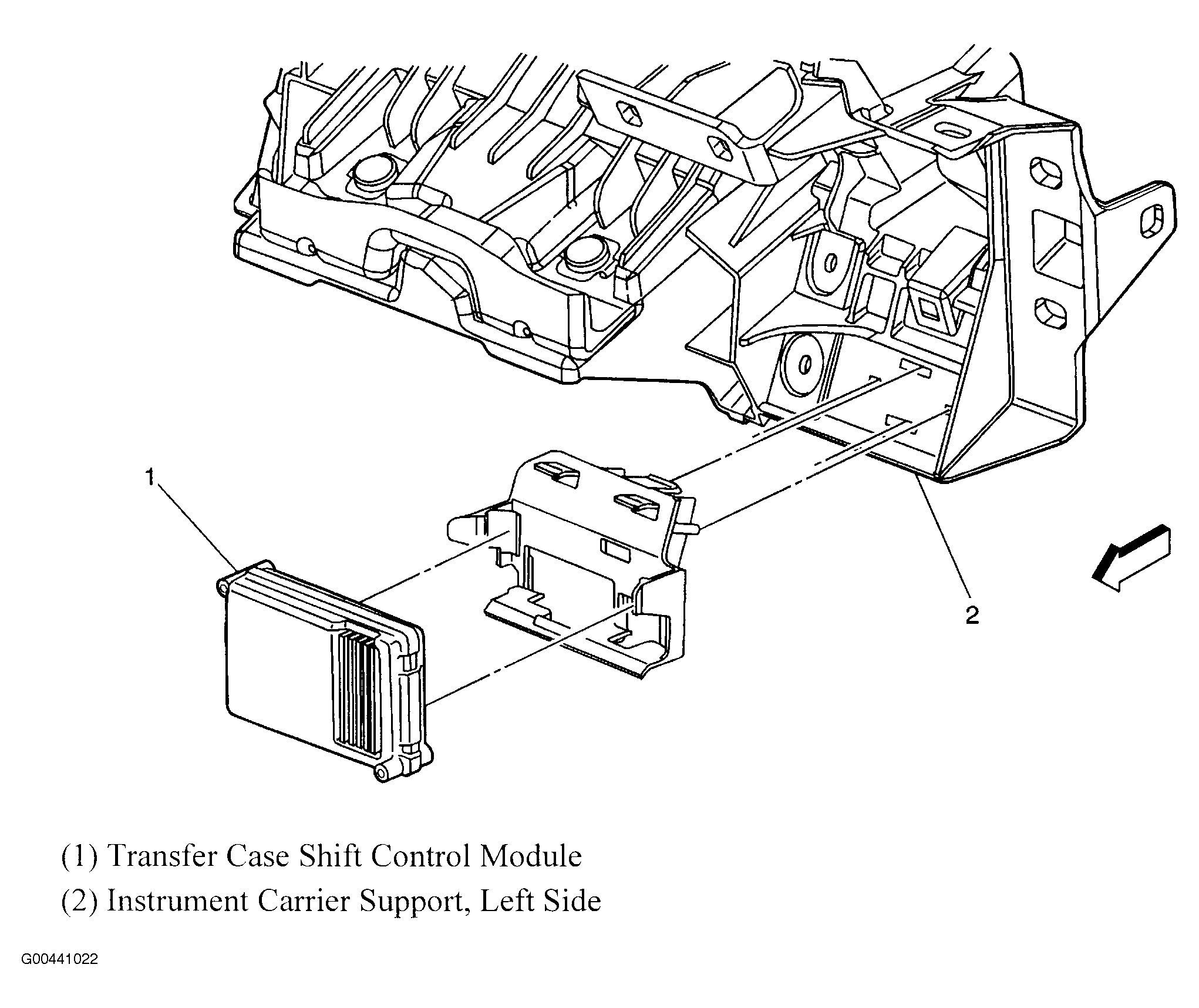 | Transfer Case Shift Control Module | Behind lower left side of dash. See Figure. |