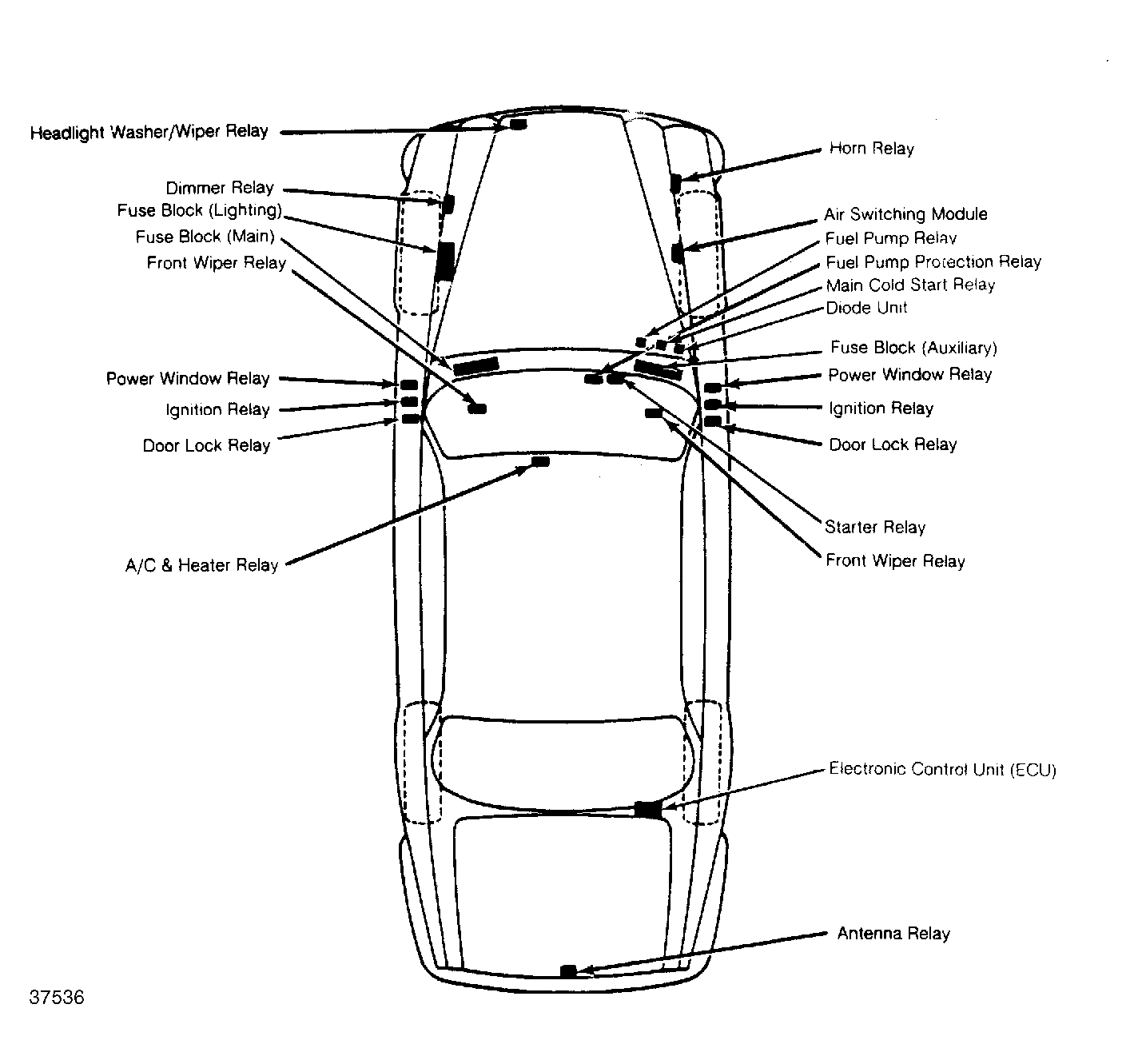 | Electronic Control Unit (ECU) | On right front corner of luggage compartment. See Figure & Figure . |