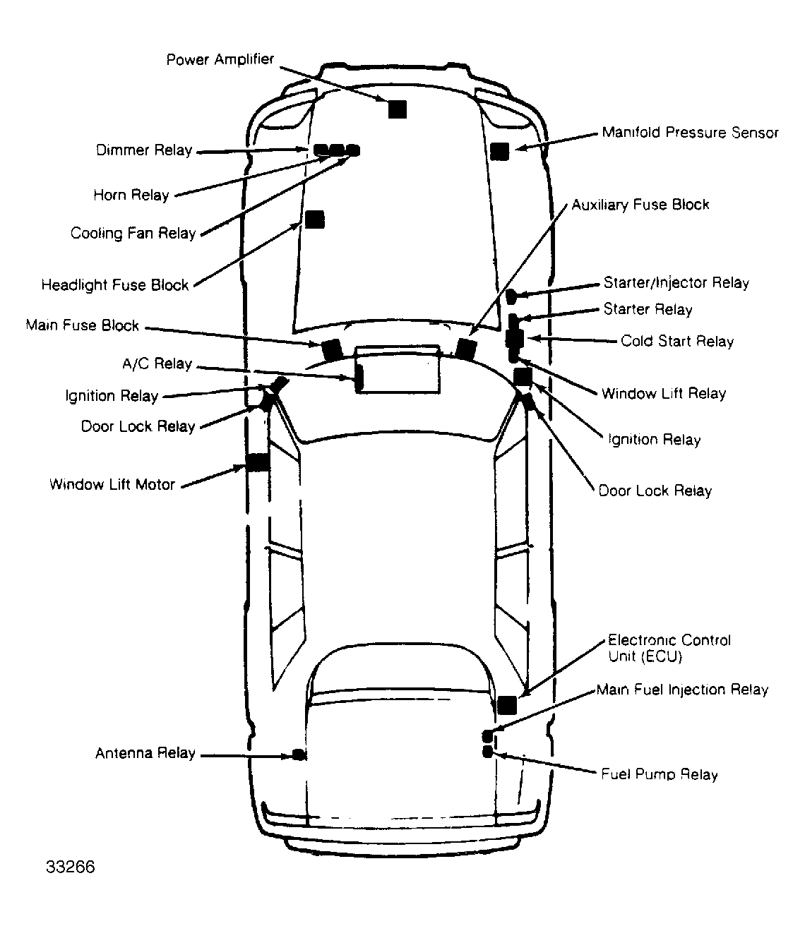 | Fuel Injection Control Unit | At right side of luggage compartment. |