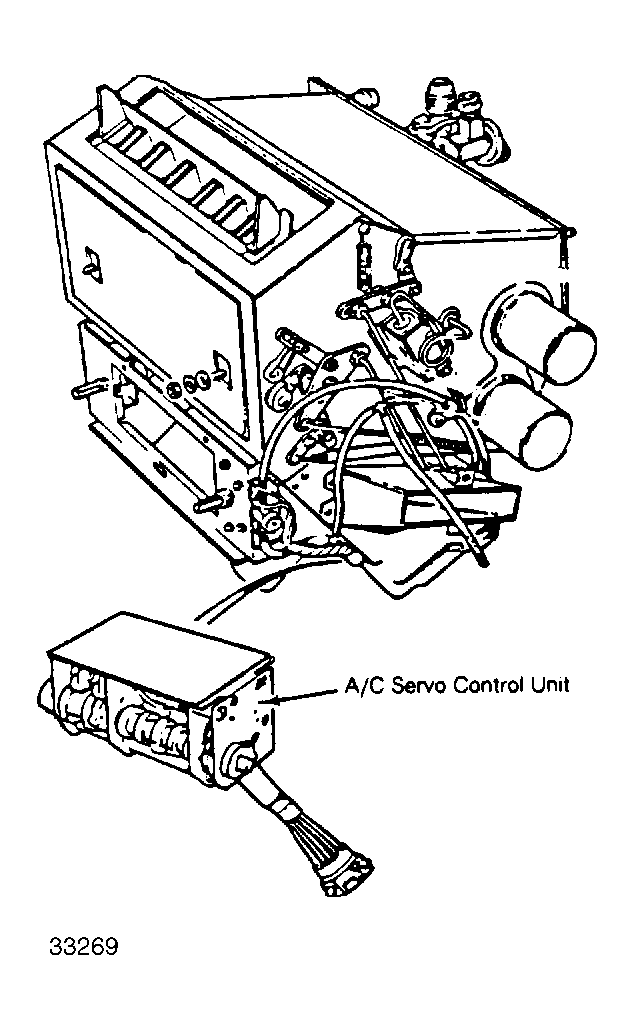 | A/C Servo Control Unit | On lower left corner of A/C assembly. See Figure . |
