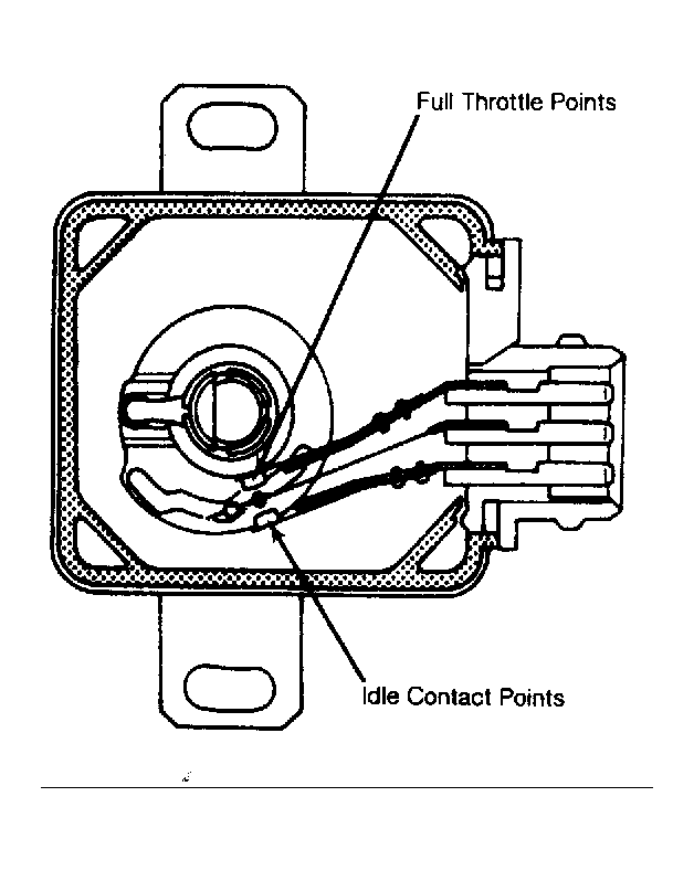A contact type throttle switch is installed on throttle chamber. The throttle switch sends information on throttle position to ECU. On the contact switch, signals are sent when throttle is at idle or full throttle positions. See Figure .