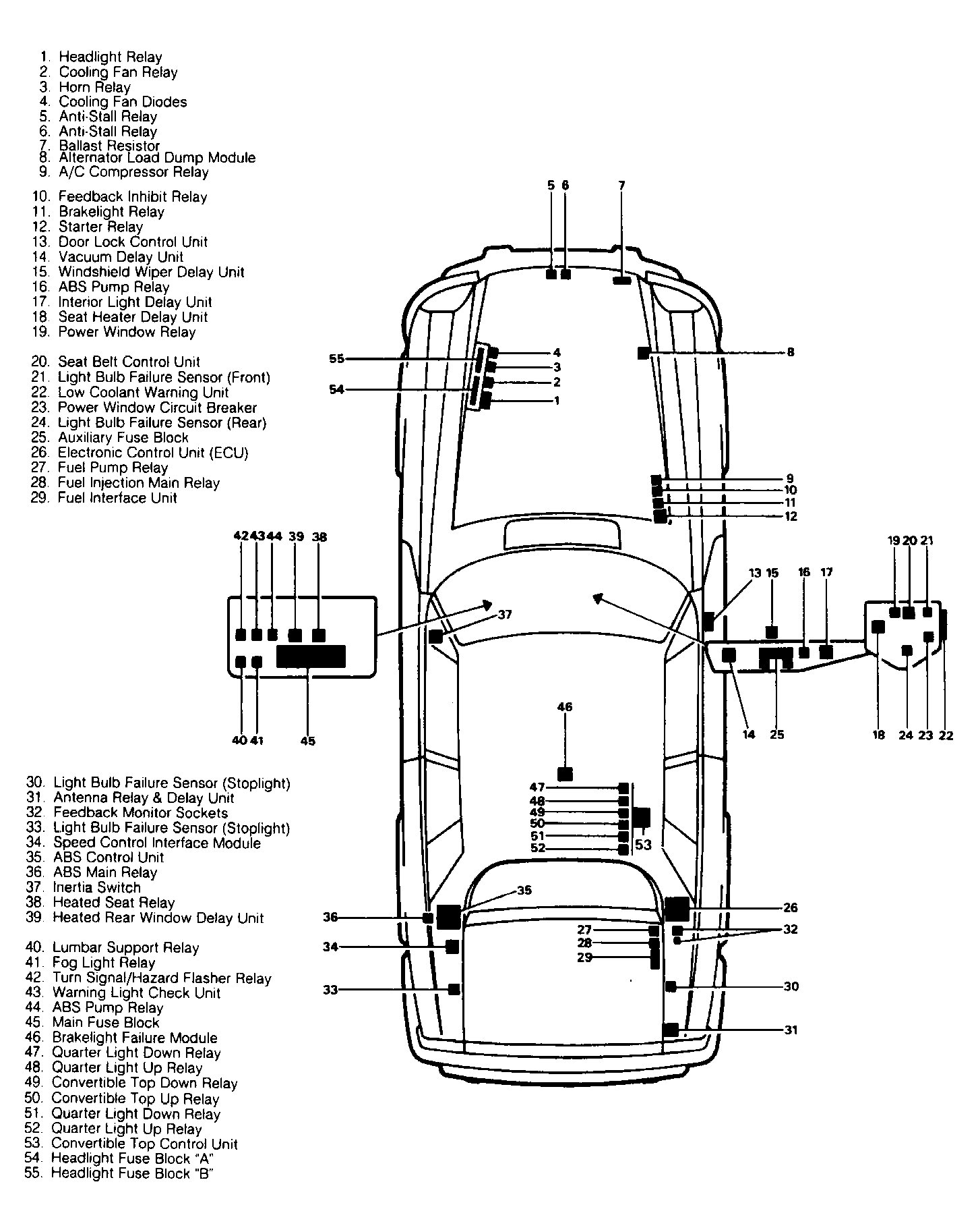| Headlight Fuse Blocks "A" & "B" | On left side of engine compartment. See Figure . | |