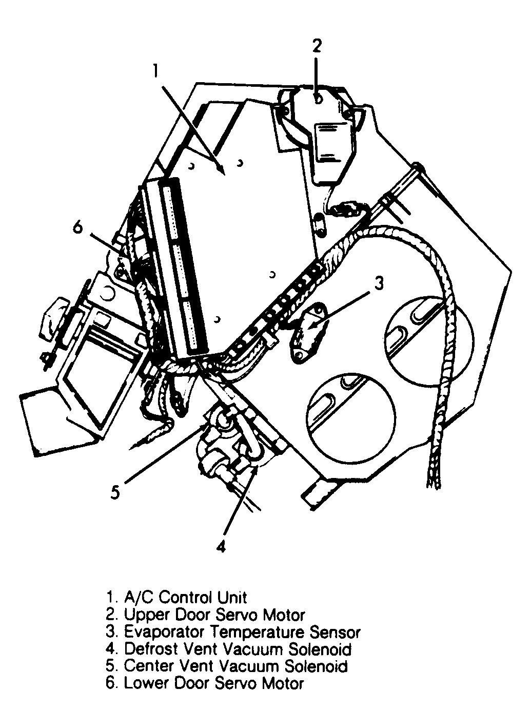 A/C Control Unit On right side of A/C unit, under right side of dash. See Figure .