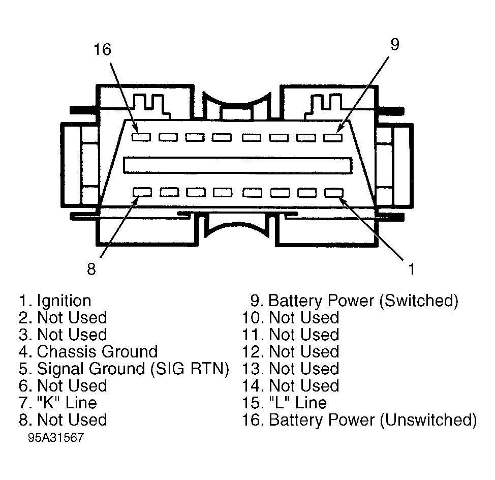 For DLC and PCM connector terminal identification, see illustrations. See Fig 1 and Fig 2 . DO NOT backprobe PCM when testing. Place tester probe into contact with terminal, from terminal side of wiring harness connectors in engine compartment. DO NOT puncture wire insulation. For female connectors, just touch terminal lightly with tester probe. DO NOT insert probe into terminal.