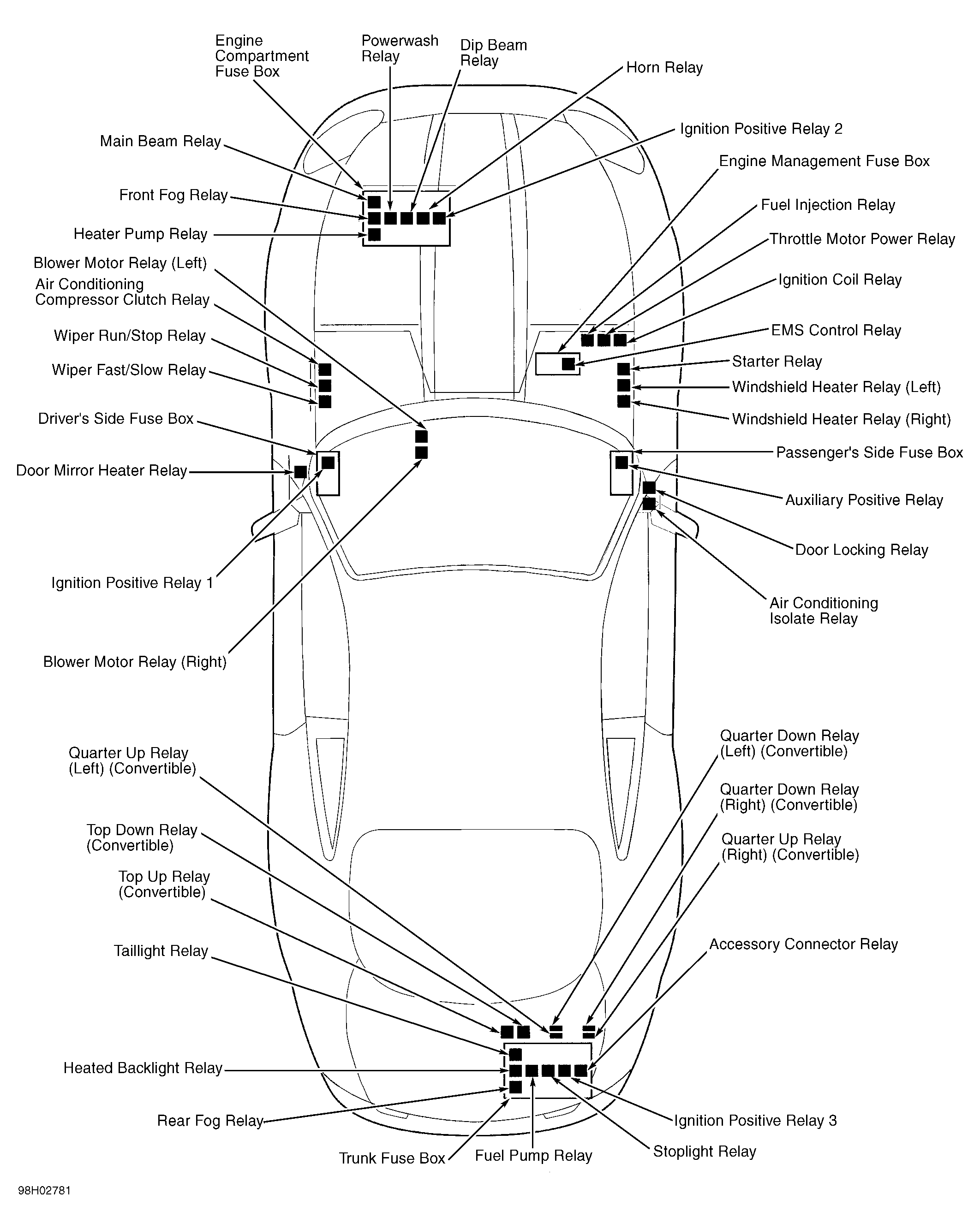 | Trunk Fuse Box | In trunk, in electrical carrier. See Figure. |