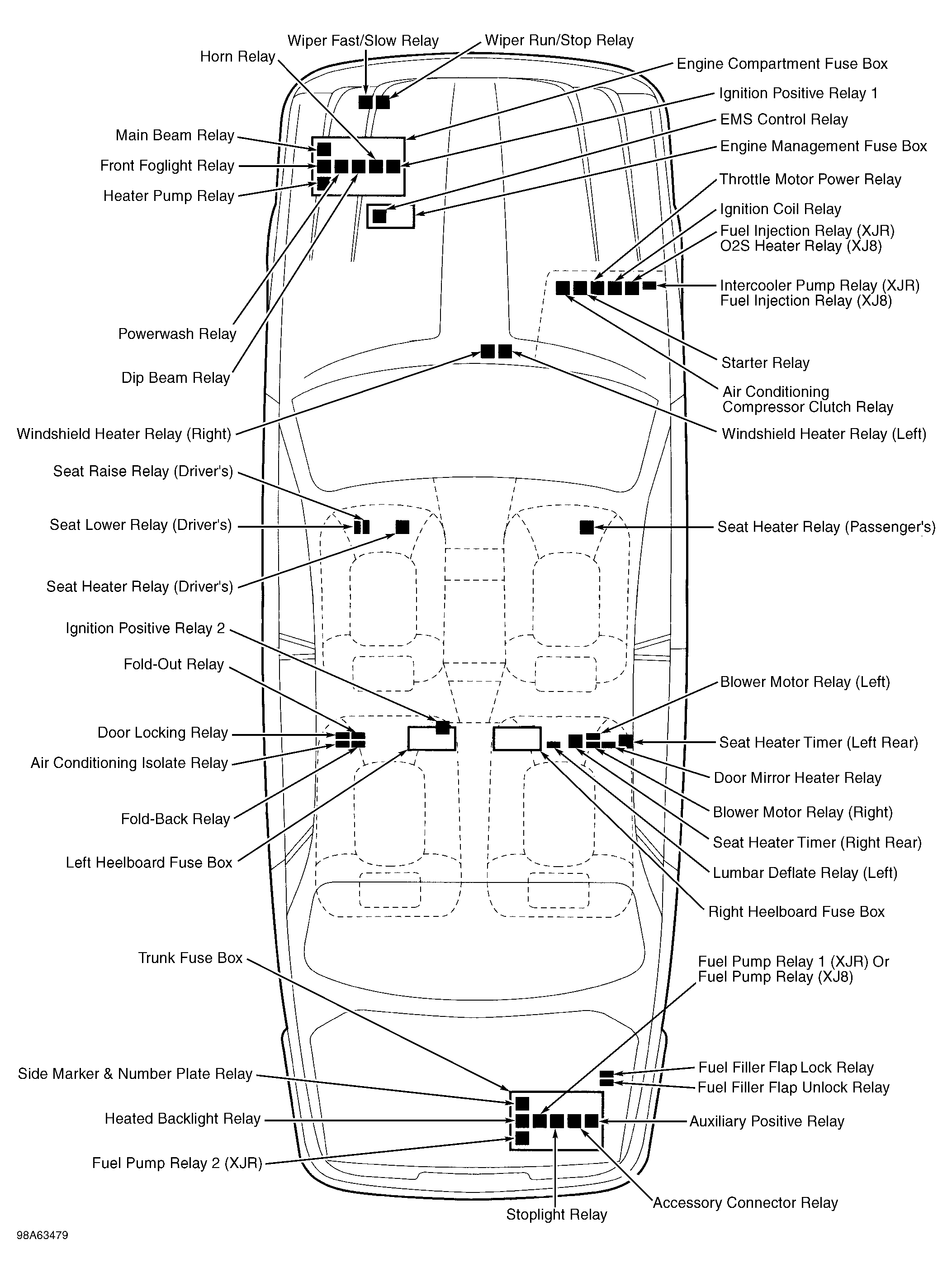 | Trunk Fuse Box | On right rear side of luggage compartment. See Figure . |