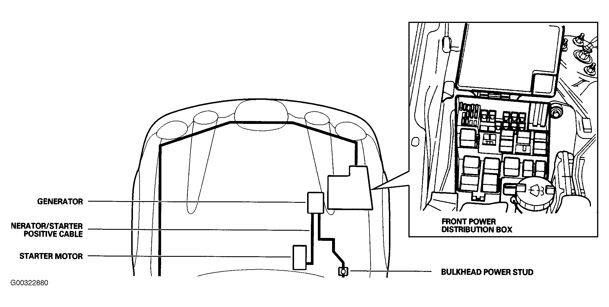 Fig 3: Locating Front Power Distribution Fuse Box & Starter Motor
