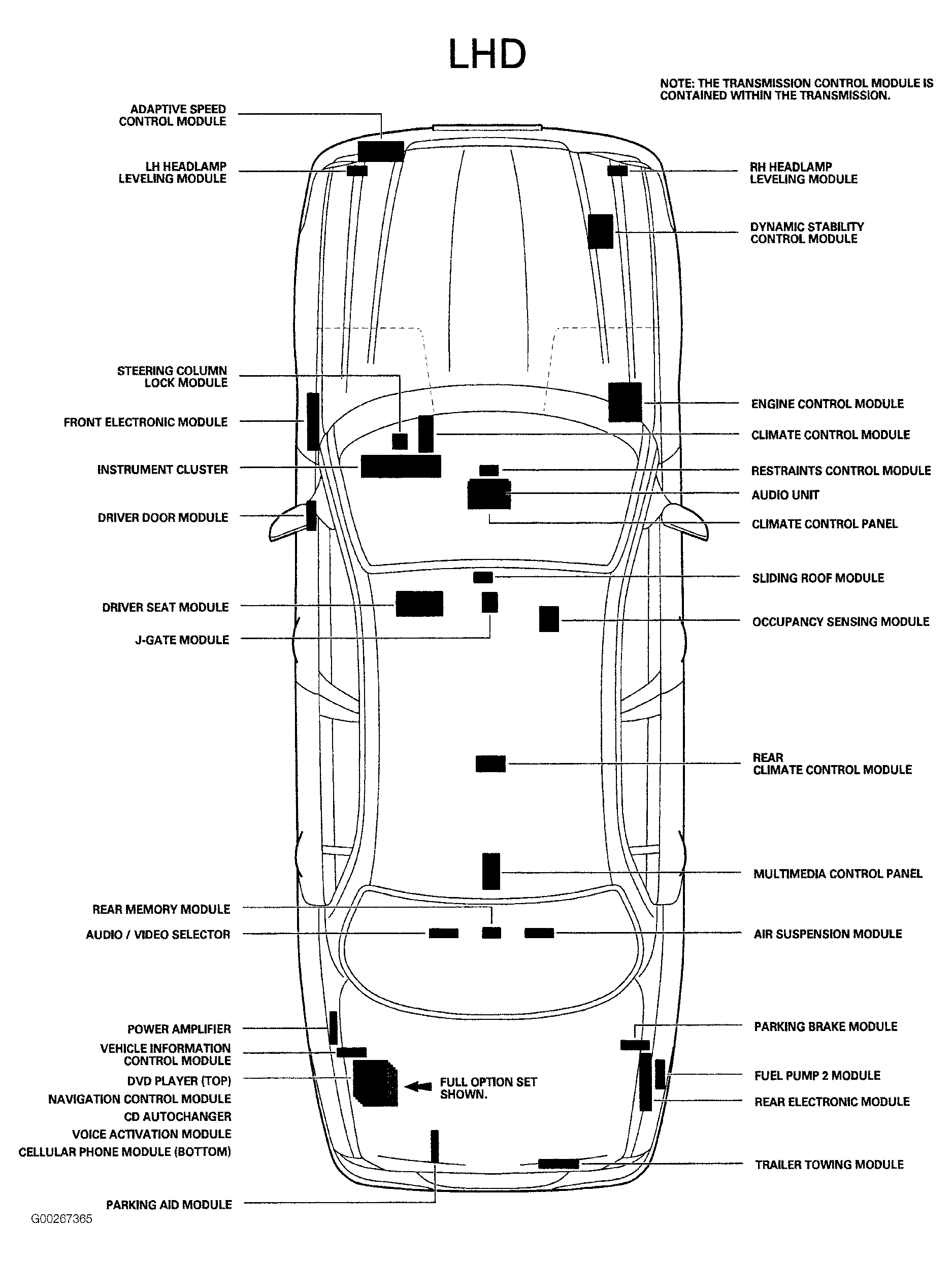 | Trailer Towing Module | At right rear of trunk. See Figure . |