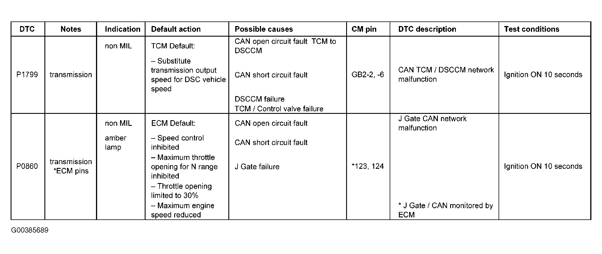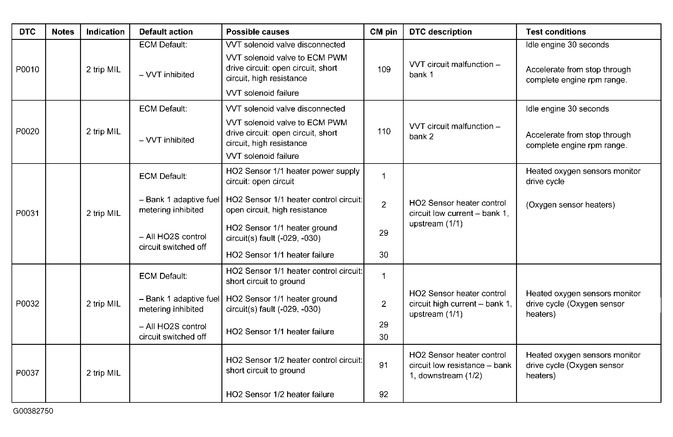 DTCs are listed in numerical order and a key to the column headings is shown in Figure -Figure .