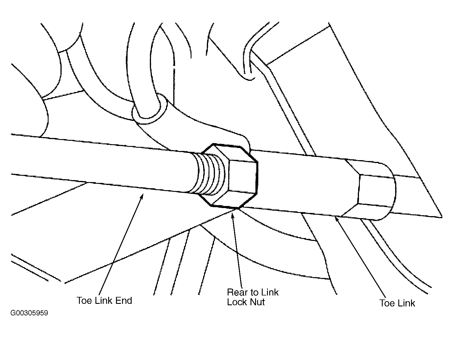 - Loosen the toe link lock nut. See Fig 1 . Clean and lubricate the lock nut and toe link threads.