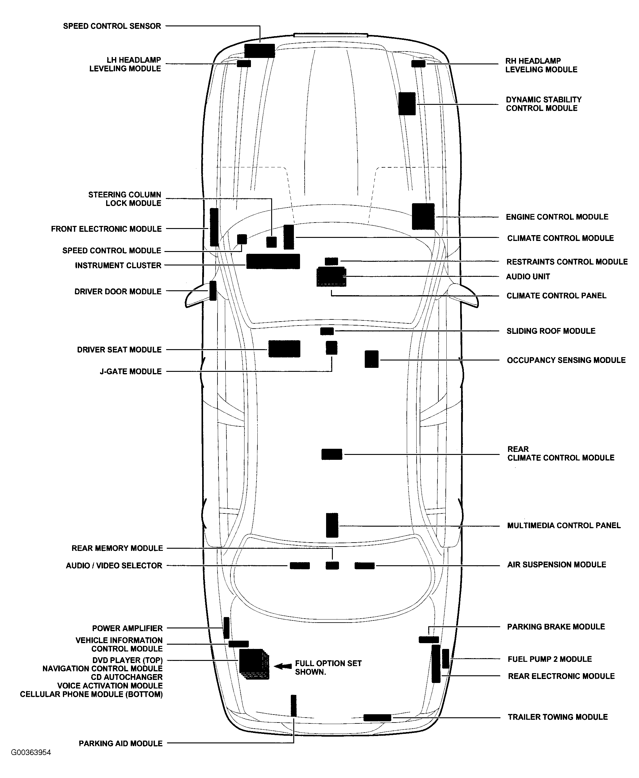 | Air Suspension Module | Behind right rear seat back. See Figure. |