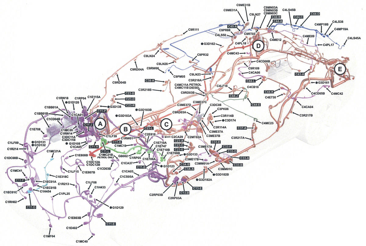 | ABS Module (C1CA01) | Right rear of engine compartment. See Figure. |