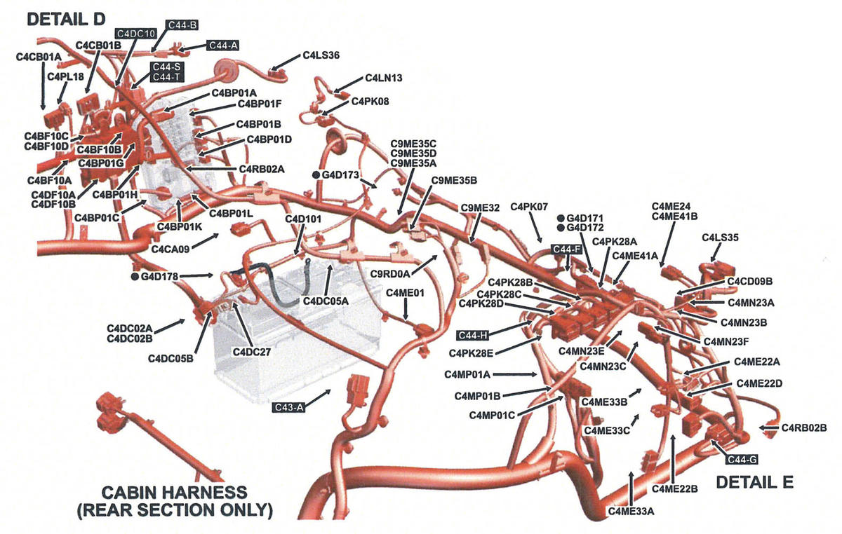 | Parking Brake Module (C4CB01A) | Right rear of luggage compartment. See Figure. |