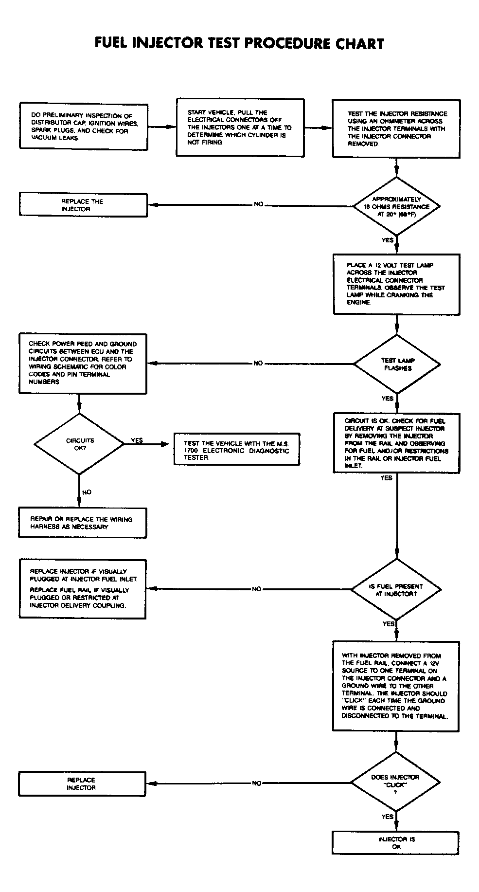 See FUEL INJECTOR TEST PROCEDURE chart. See