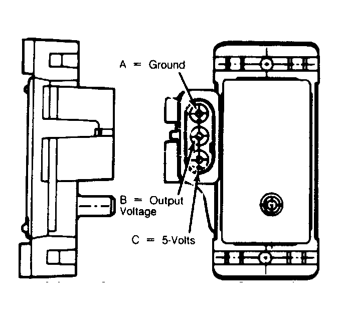 - Inspect MAP sensor hoses and connections. Repair as necessary. With ignition on and engine off, test MAP sensor output voltage at connector terminal "B". (Marked on sensor body). See Fig 1