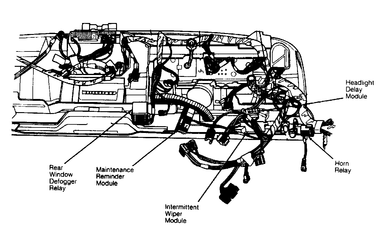 | Headlight Delay Module | Under left side of dash, above intermittent wiper module. See Figure . |