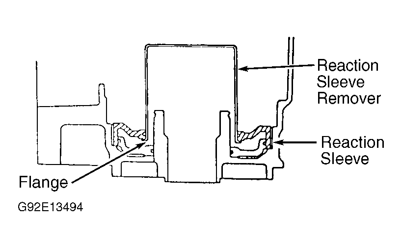 - Using Reaction Sleeve Remover (7542), remove reaction sleeve by inserting flanges on sleeve remover under reaction sleeve and lifting upward. See Fig 4 .