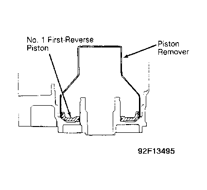 - Using Brake Piston Remover (7543), remove No. 1 first-reverse piston by inserting flanges on piston remover/installer under piston and lifting upward. See Fig 5 .