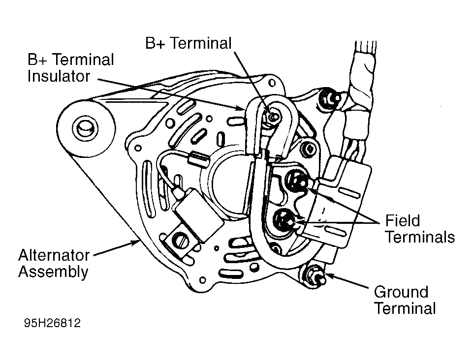 - Connect a carbon pile rheostat between battery terminals. Ensure carbon pile is in OFF position before connecting leads.CAUTION: Generator has 2 field terminals. In step 3), DO NOT connect jumper wire to generator field terminal Dark Green/Orange wire (Dark Green/Black wire on Grand Cherokee).