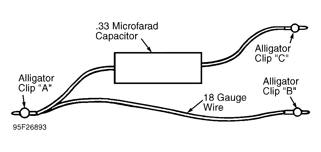 - Ensure ignition is off. Disconnect PCM 60-pin connector and ensure connector is clean, has no spread terminals and is not damaged. Make a special coil testing jumper wire using a .33 microfarad capacitor, 3 alligator clips and 18-gauge wire. See Fig 1 . Remove test lead from coil positive terminal. Connect an 18-gauge jumper wire between battery positive terminal and coil positive terminal. Remove coil wire from distributor cap. Position end of coil wire about 1/2" (13 mm) from block.