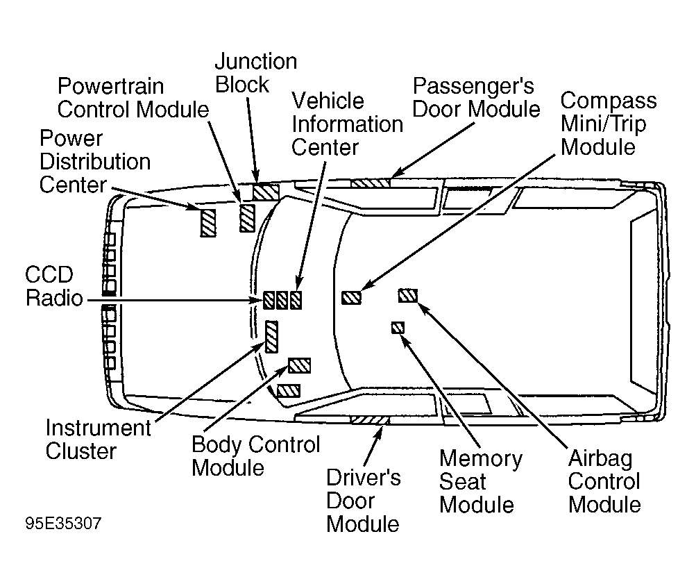 Body Control Module (BCM) is located under left side of dash. See Fig 1 . BCM controls many of the vehicle's electrical functions and features by providing power and ground to a variety of systems. BCM contains a central processing unit and interfaces with other modules in the vehicle on the CCD data bus network.
