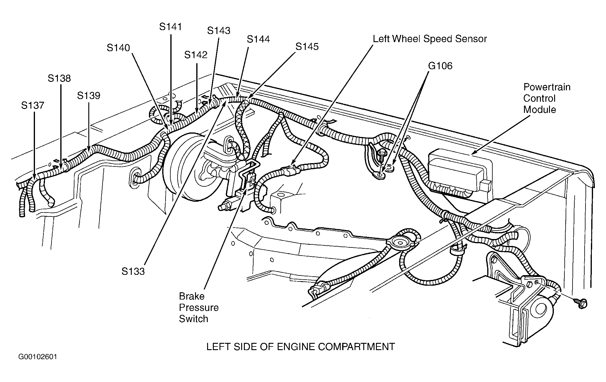 | Powertrain Control Module (PCM) | Left fender side shield. See Figure. |