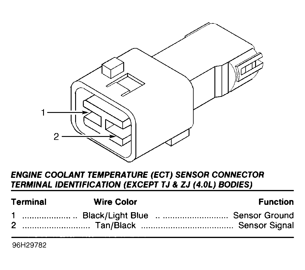 ENGINE COOLANT TEMPERATURE (ECT) SENSOR CONNECTOR TERMINAL ID