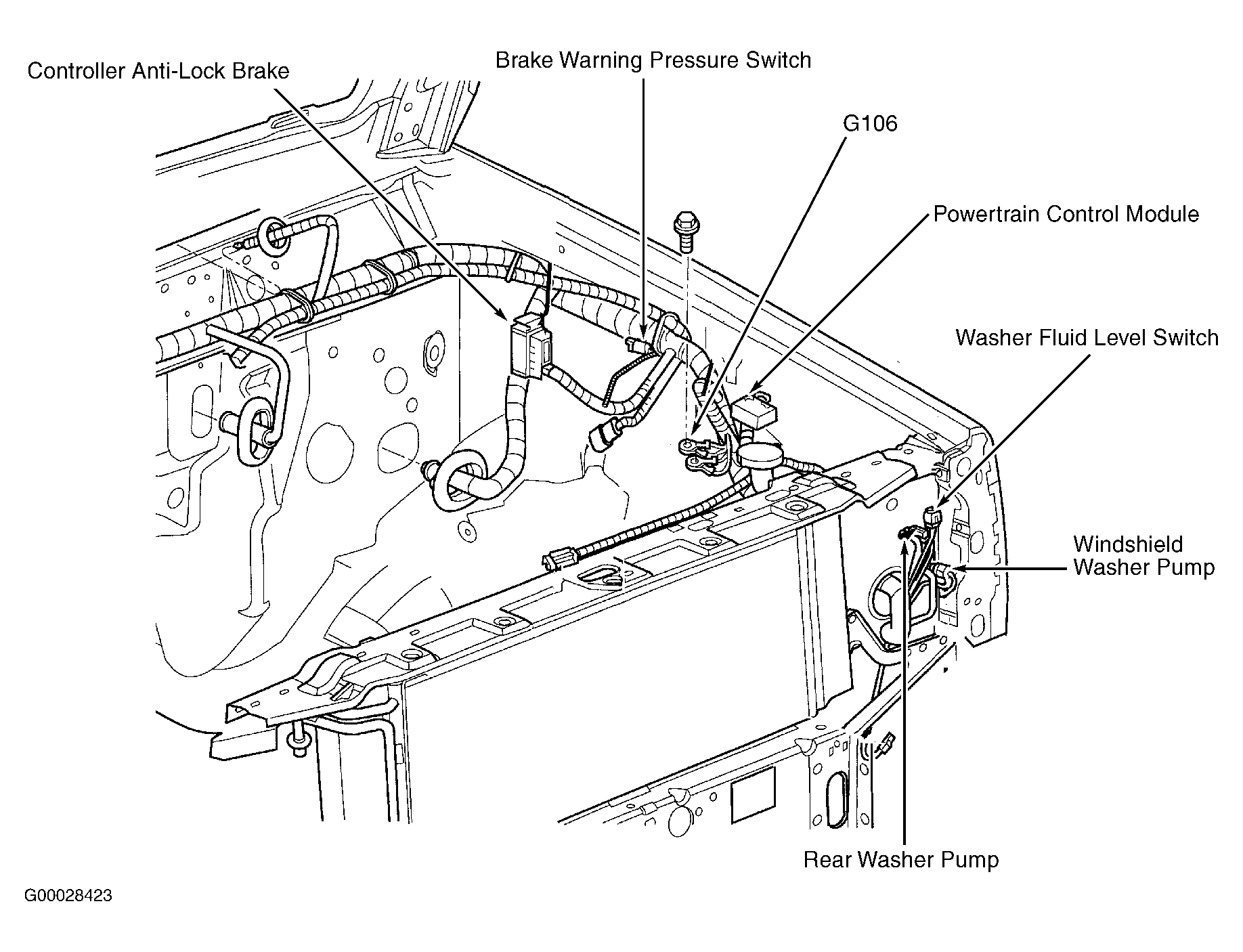 | Powertrain Control Module | On left fender side shield. See Figure. |