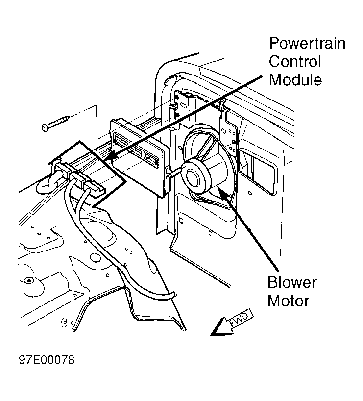Powertrain Control Module In right rear of engine compartment, on firewall. See Figure .