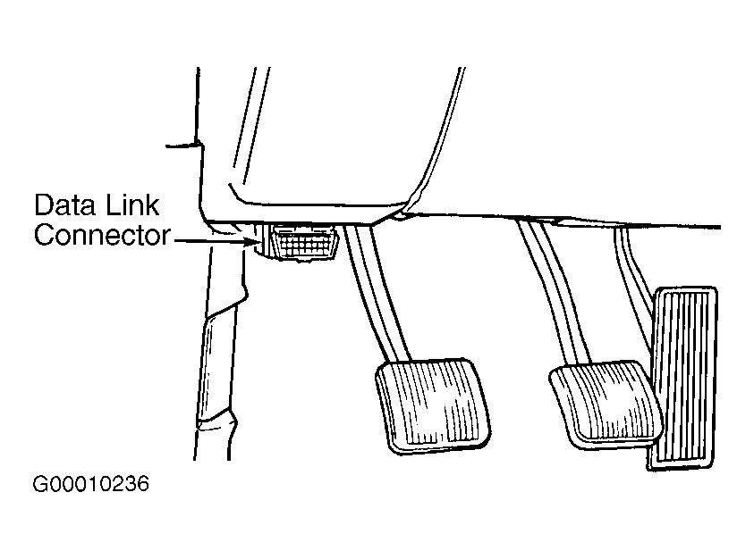 1. Connect scan tool to Data Link Connector (DLC) located below instrument panel, near steering column. See Figure .