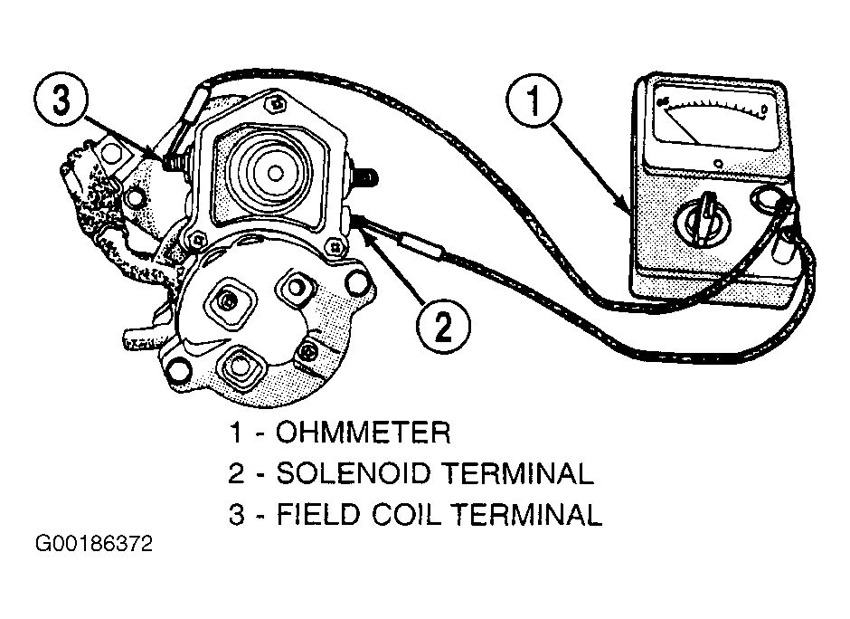 - Check for continuity between solenoid terminal and solenoid field coil terminal with a continuity tester. See Fig 1