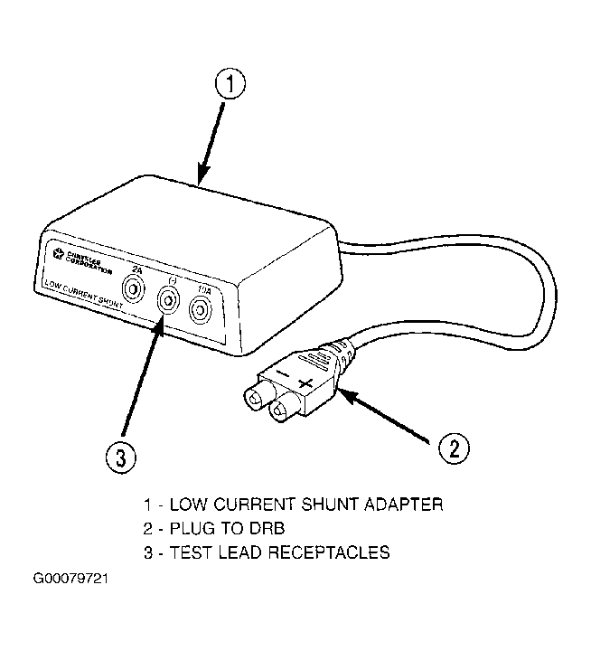 - Obtain DRBIII(R) Low Current Shunt (LCS) adapter. See Fig 1 . Plug cable from LCS adapter into DRBIII(R) scan tool at SET 1 receptacle.