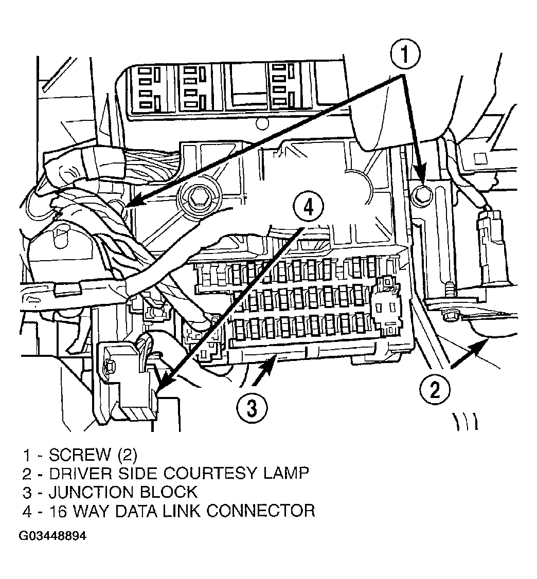 - Remove the two screws that secure the JB to the instrument panel steering column support bracket (Fig 3 ).