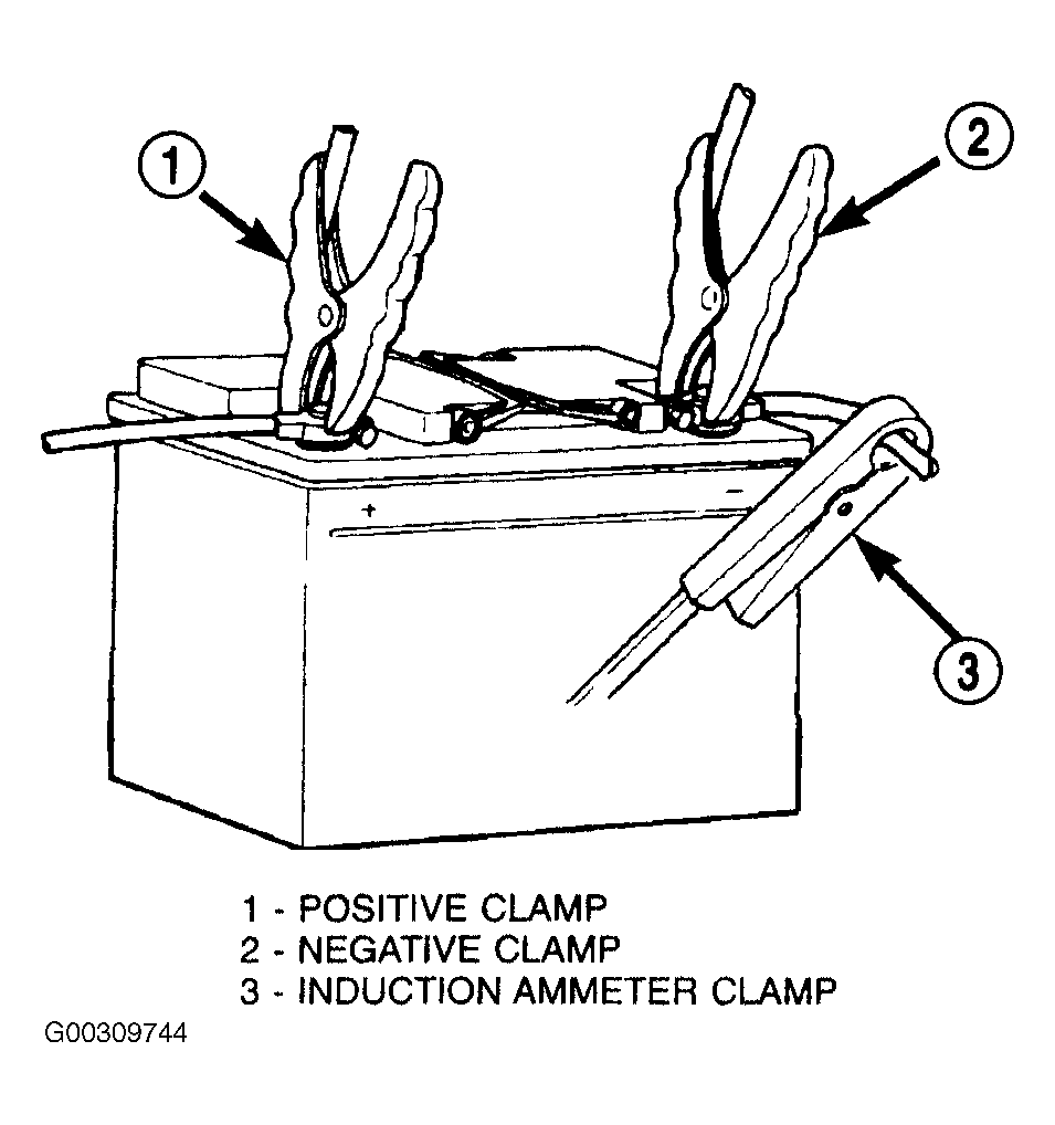 - Connect a suitable volt-ampere tester to the battery terminals. See Fig 1 . See the instructions provided by the manufacturer of the volt-ampere tester being used.