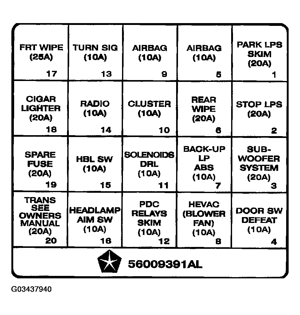 Home >> Jeep >> 2003 >> Wrangler SE, Automatic >> Repair and Diagnosis >> Electrical >> Body Electrical >> Power Distribution >> Fuse Block >> Description