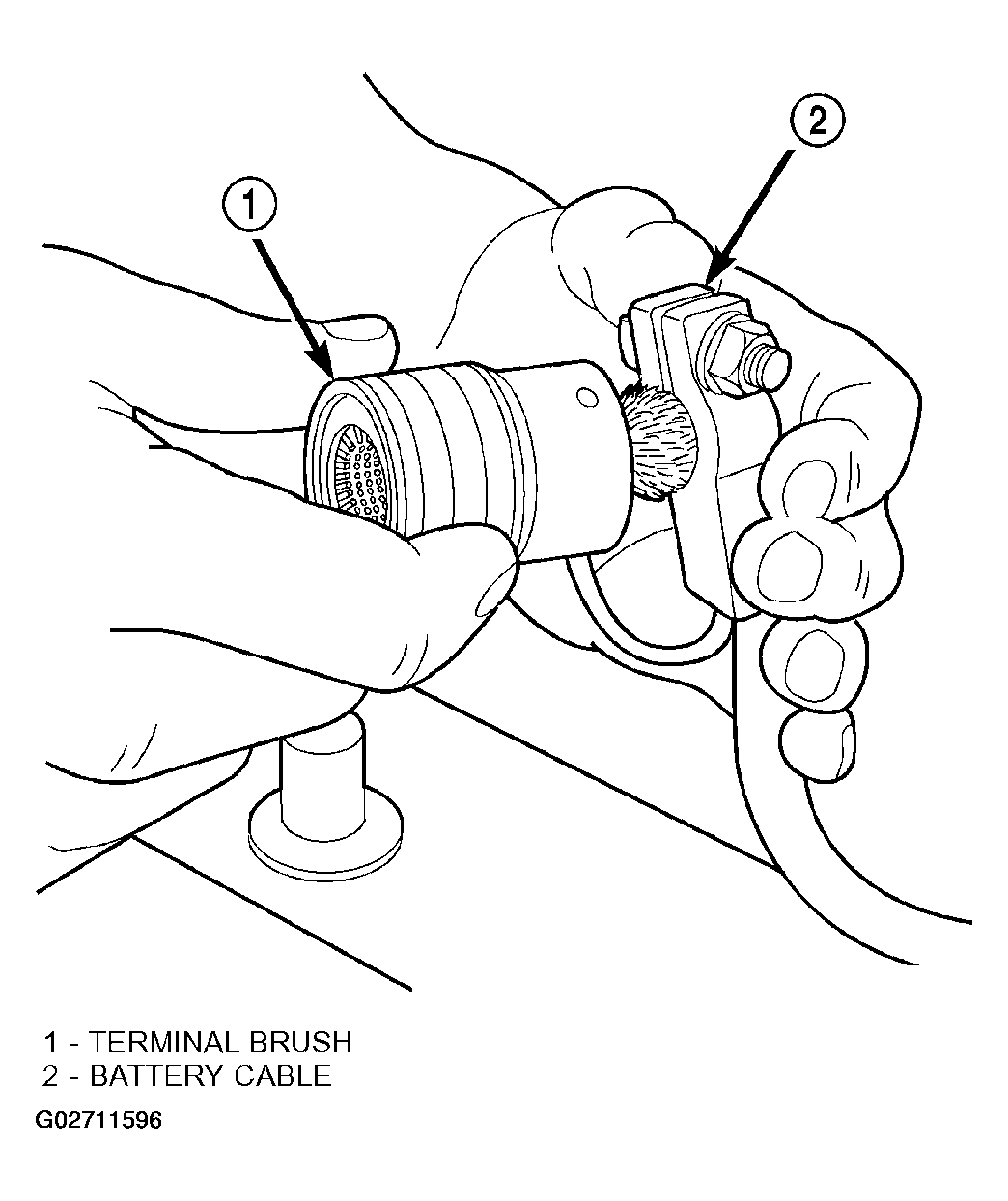 - Clean the battery cable terminal clamps of all corrosion. Remove any corrosion using a wire brush or a post and terminal cleaning tool, and a sodium bicarbonate (baking soda) and warm water cleaning solution (Fig 1 ).