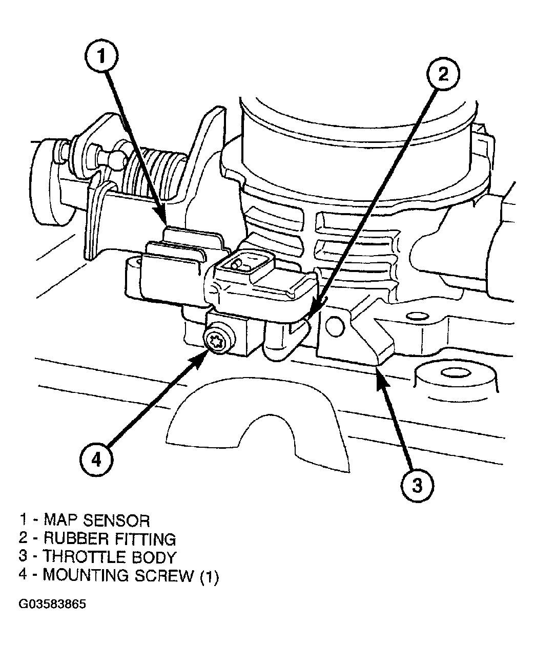 The MAP sensor is mounted to the side of the throttle body. An L-shaped rubber fitting is used to connect the MAP sensor to throttle body (Figure ).