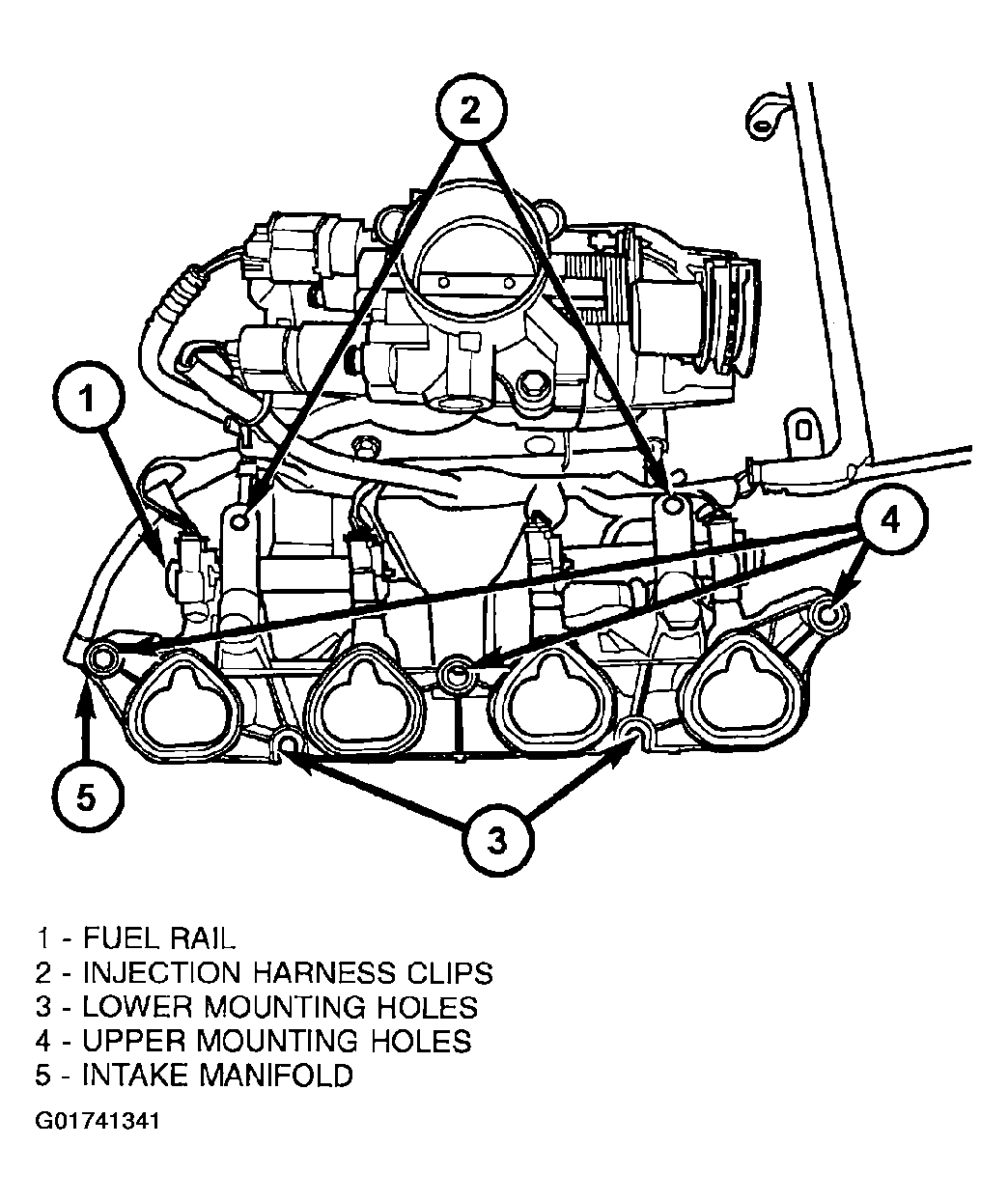 - Snap 2 injection wiring harness clips into brackets. See Figure.