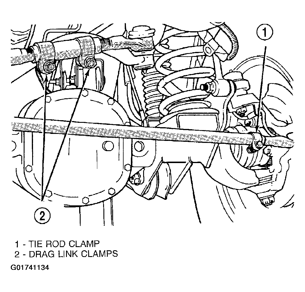1. Install the drag link adjustment sleeve and tie rod end. Position clamp bolts. See Figure.
