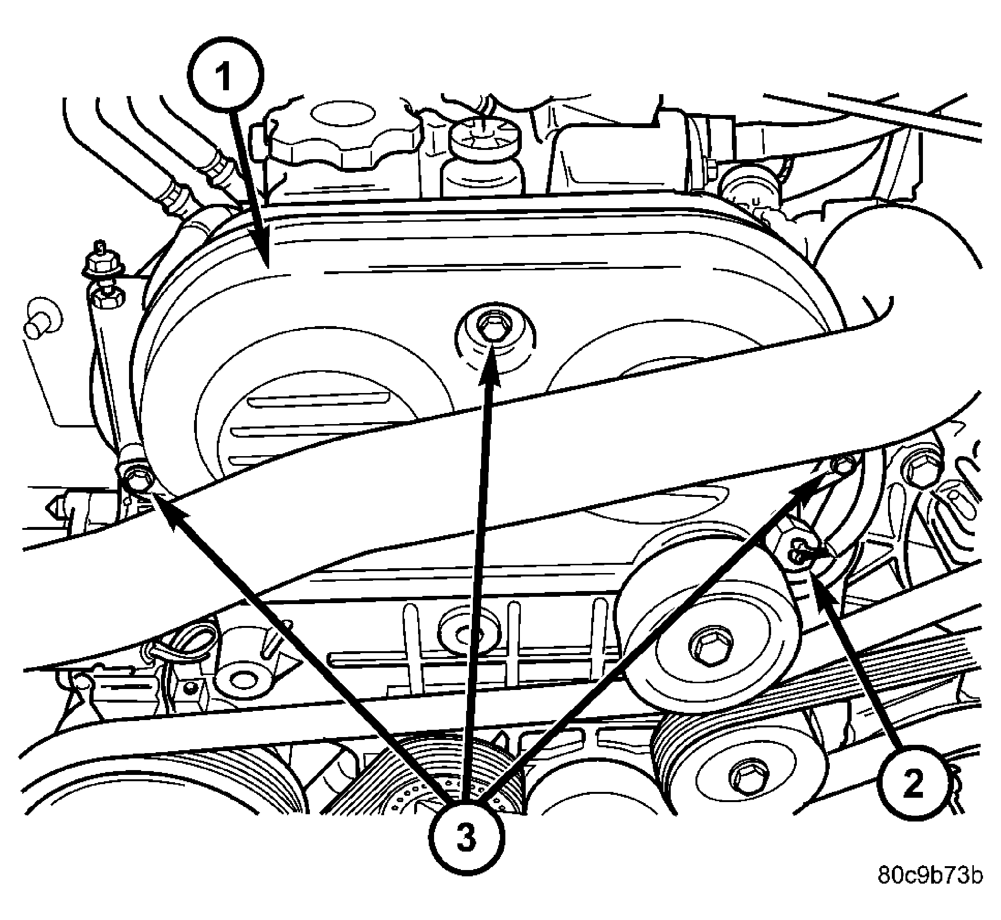 - Install upper timing belt cover and 3 bolts.