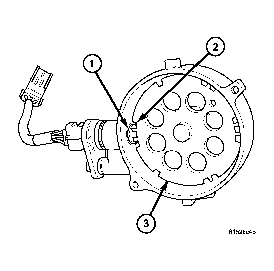 The CMP sensor (1) uses a rotating hall effect device called a target wheel (3) which is attached to the oil pump drive shaft. The target wheel contains sets of machined notches (2). See Fig 1.