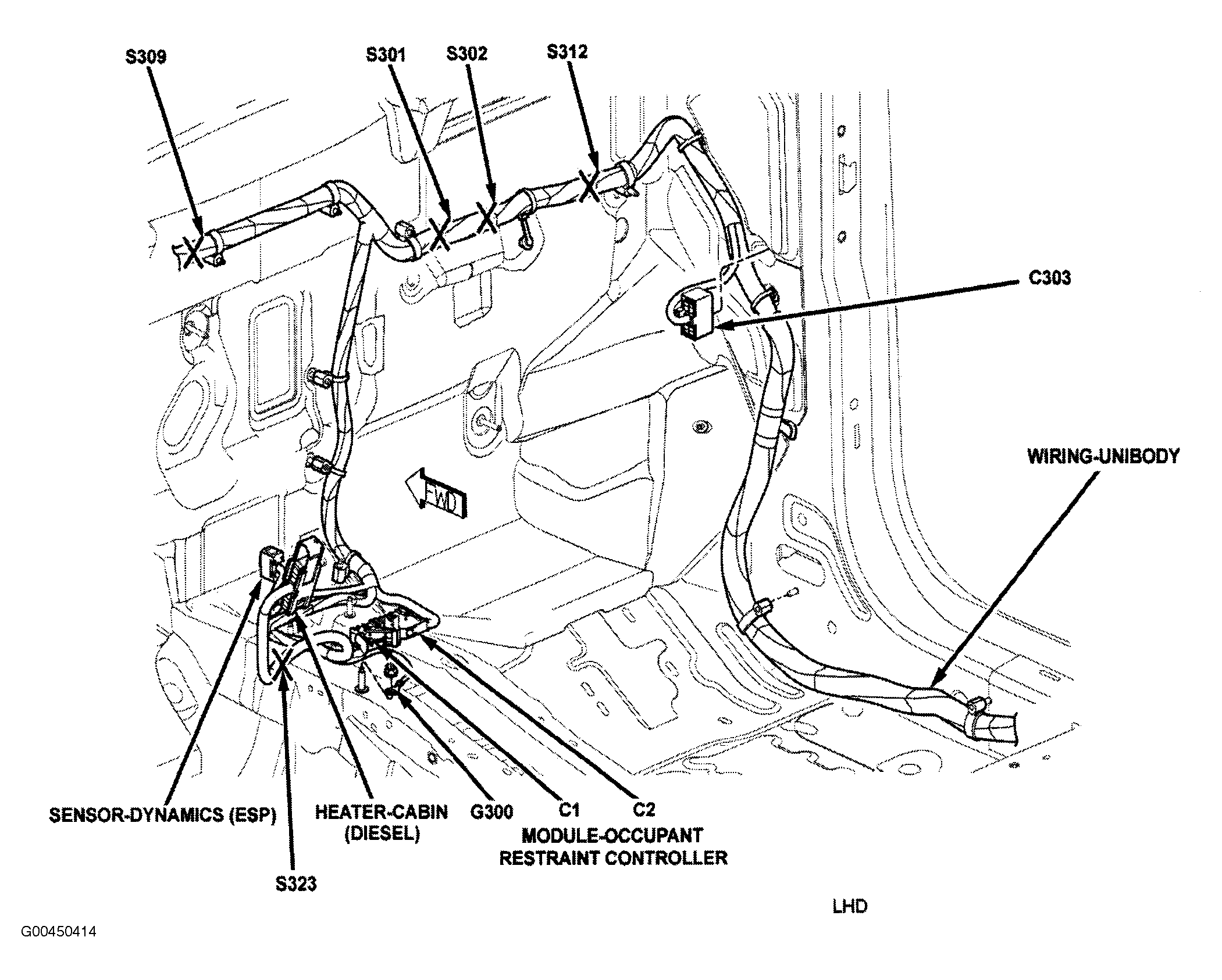 | Heated Seats Module | Under seat. See Figure. |