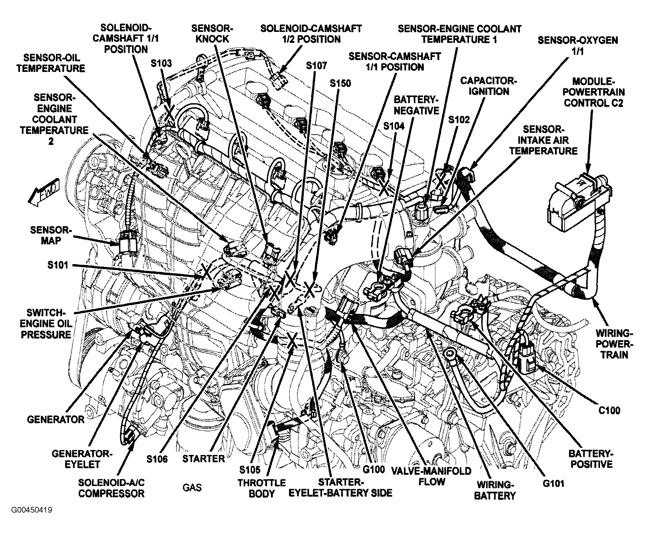 | Powertrain Control Module | Left side engine compartment. See Figure. |