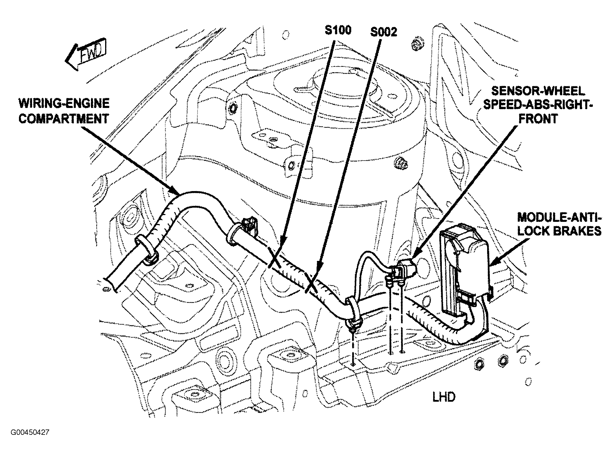 | Anti-Lock Brakes Module | Engine compartment near right shock tower. See Figure. |